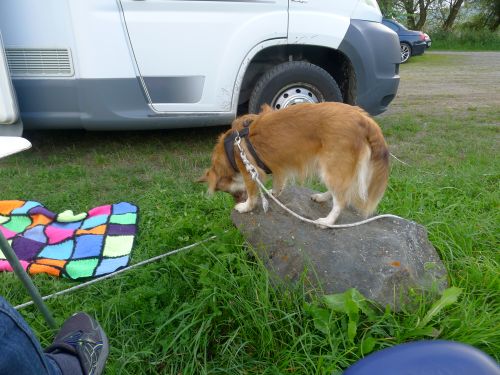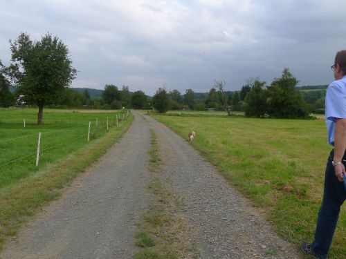 Er reagierte nicht aufs Rufen und rannte ins offene Feld. Dann drehte er gottseidank um und lief zum Womo.