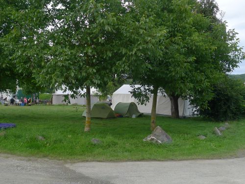 Leider ist Hungen voll, und der Platz in Wetzlar am Dillufer ebenfalls. Also fahren wir weiter nach Leun und haben Glück. Hier stehen nur 3 Wohnmobile, aber nebenan zwei Zeltlager mit Kanufahrern. Egal, die Gegend passt. Alles ist gut.