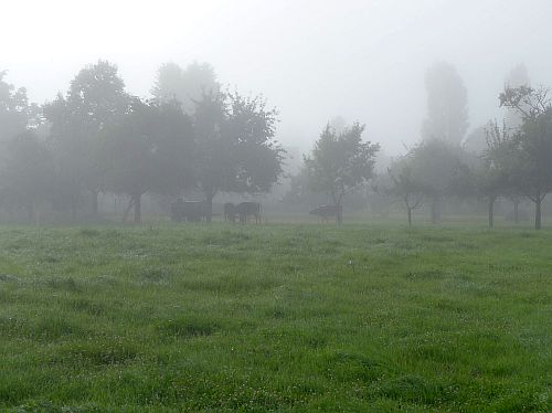 Die Nacht war absolut ruhig, die Kanufahrer waren wohl alle müde. Beim Morgengassi hebt sich gerade der Frühnebel und verspricht einen schönen Sonnentag.