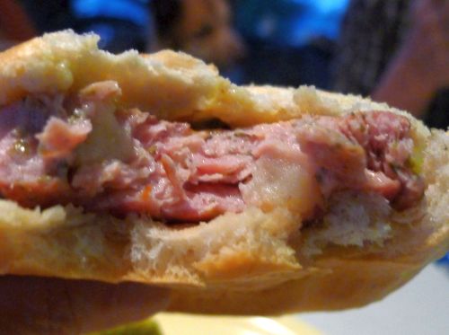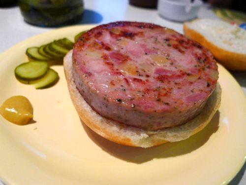 Fürs Abendessen kaufen wir noch schnell paar Scheiben Saumagen und Brötchen,