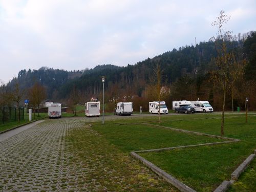 Die Sonne weckt uns, verzieht sich aber gleich wieder hinter Hochnebel. Wir machen unser Morgengassi und ich bin erstaunt, was da gestern im Schutz der Dunkelheit hier noch angekommen ist. Der Platz scheint beliebt zu sein, denn weiter vorn standen auch noch zwei.