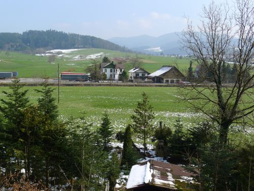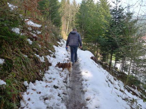 Wir nehmen den Panoramaweg am Berg entlang und landen tatsächlich im Schnee.