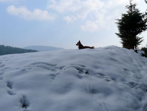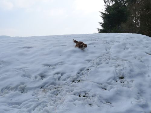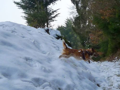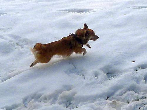 Carl tobt wie ein wilder Watz durch den Schnee und hat richtig Spaß.