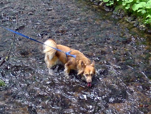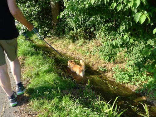 wobei Carl immer frei rennen kann und sichtlich Spaß hat. Er verbellt auch keine Menschen mehr, sondern traut sich ran, wenn er angesprochen wird. Hundebegegnungen verlaufen wie immer problemlos, und er lässt sich freudestrahlend abrufen, weil er weiß, dass ein Leckerchen wartet. So machts wirklich Spaß, wir haben einen Vorzeigehund. Lediglich im Wassergraben musste er an die Leine, weil hier Autos zur Klinik fahren könnten.