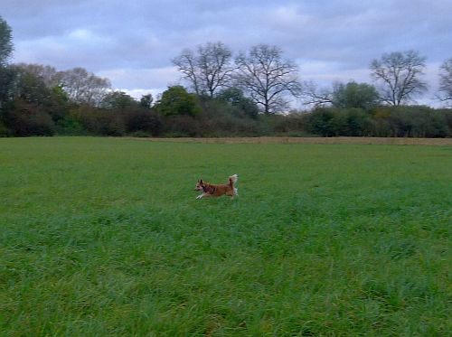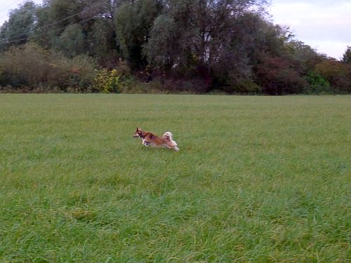 Und Carlemännchen ist wieder fit. Im Mäuselsprung gehts über die ganze Wiese. Da geht einem am frühen Morgen schon das Herz auf und die Welt ist in Ordnung, wenns Hundi gesund ist.