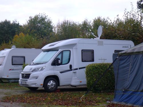 Man merkt halt, dass gerade Herbstferien sind, denn der Platz ist ziemlich voll. Aber egal, wir sitzen wahrscheinlich eh kaum draußen.
