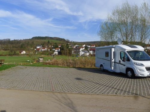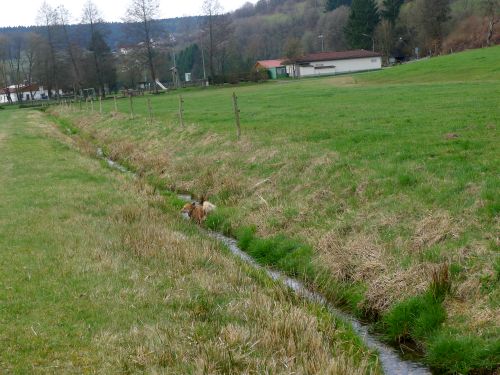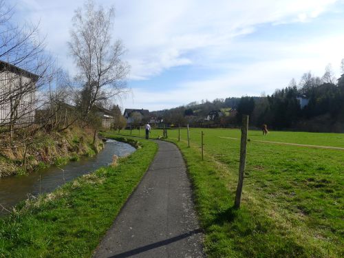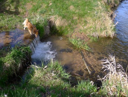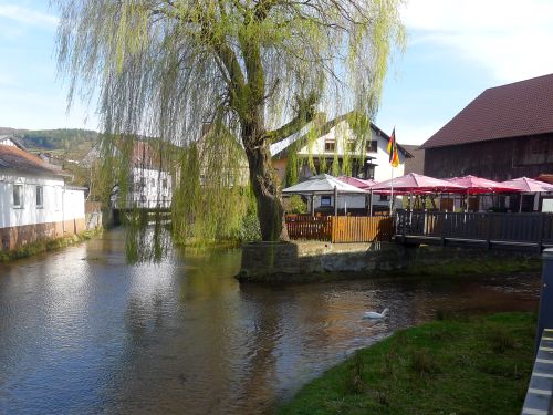 An der Jossa entlang, die doch recht tief und schnell ist, gehts ins Örtchen, dort müssen wir unsre Stellplatzgebühr entrichten.