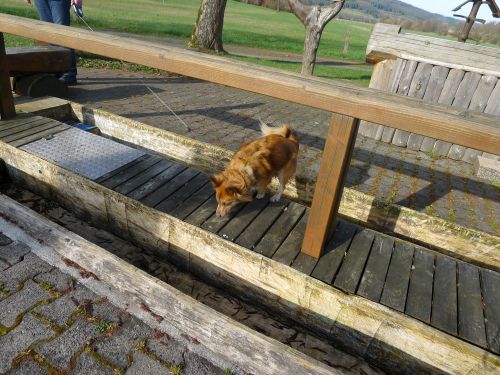 Die Kneipp-Anlage ist noch im Winterschlaf und Carl darf diesmal drauf rumturnen. Findet er aber ohne Wasser langweilig.