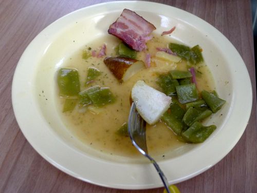 Bei uns gibts heute Bärlauchsüppchen ... und das sind die Reste von Birnen, Bohnen und Speck.