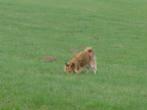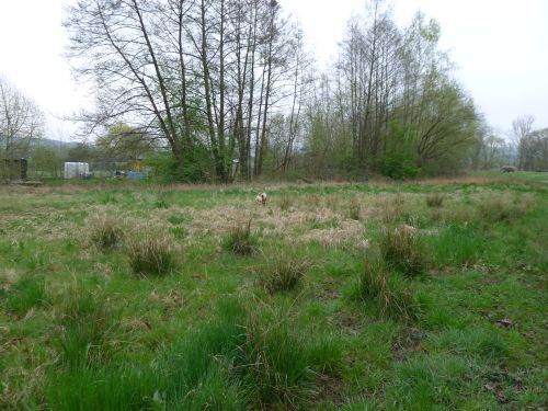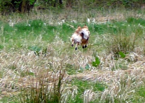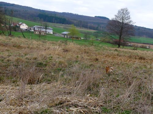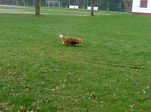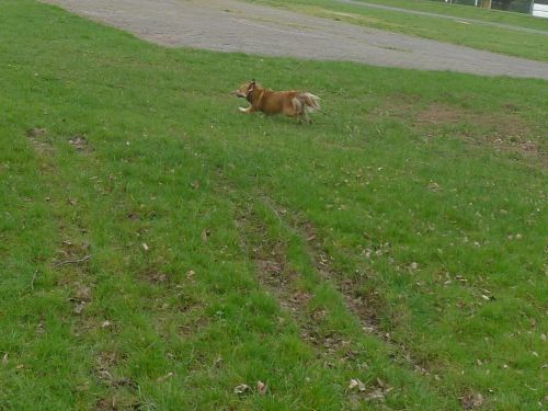 Und gegen 8:00 suchten wir einen Bäcker, der offen hat. Leider gibts den nicht mehr. Auf dem Rückweg durfte Carl mal wieder über eine unaufgeräumte Wiese hüpfen. Das liebt er. Er springt dann im Mäuselsprung elegant und in gleichmäßigem Rhythmus einen großen Kreis.