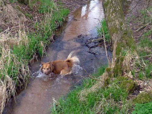 Carl findet überall kleine Bächlein und rennt wie ein Irrer durchs Wasser