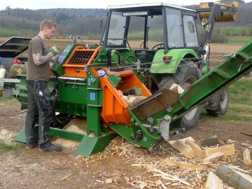 Wir machen uns auf den Rückweg und schauen uns dabei noch an, wie die Dorfbewohner hier mitten im Feld ihr Holz spalten.
