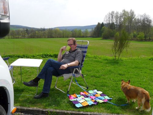 Wieder zurück machen wirs uns nochmal gemütlich und halten mit den Nachbarn links und rechts Schwätzchen, und Carl zeigt, wie gut er erzogen ist.