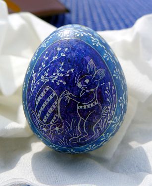 Auf dem Rückweg gehen wir noch auf den Kunsthandwerksmarkt und sorgen ein wenig für Umsatz. Unter anderem kann ich mich bei den gekratzten Eiern nicht zurückhalten.