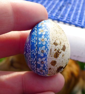 Erstaunlich, was auf so ein kleines Wachtelei alles drauf passt. Aber auch die Hühnereier sind sehr aufwändig gearbeitet.