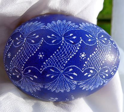 Hier ists Muster rundum. Die sind aber auch wesentlich teurer als das Wachtelei, denn es dauert gut 10 Stunden, bis so ein Ei gekratzt ist.