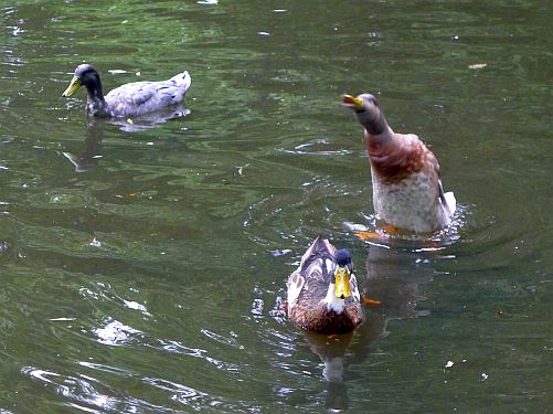 Die Ente zeigt, dass sie eine Laufente ist. Aber da gabs mal einen, der konnte besser übers Wasser laufen als sie. Naja, nen Versuch wars wert.