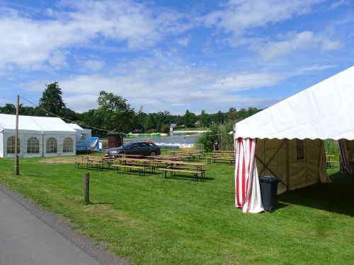 Hier wird heute gefeiert, und zwar richtig. Mit mehreren Zelten, einer großen Open Air Bühne, und mit Höhenfeuerwerk um 23:00. Das wird heftig. Um zu überlegen, ob wir bleiben, machen wir erst mal eine Seeumrundung und kommen am Ententreffen vorbei.