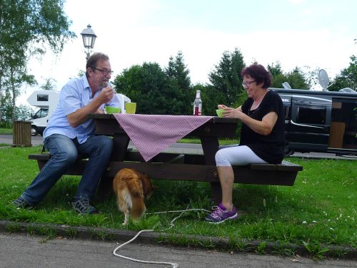 Wieder zurück auf dem Platz wirds Zeit fürs Abendessen. Und während ich anfange den Tisch zu decken bekommen wir Nachbarn. Zwei spanische Womos mit jeweils 3 Kindern und hintendrauf jeweils 3 Kinderfahrräder. Und weil wir uns so schön frei hingestellt haben, stellt sich einer links und einer rechts neben uns. Wir stecken also mittendrin im Feriengeschehen.
