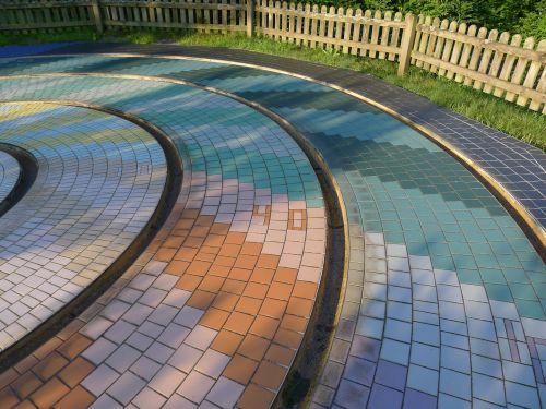 Mit 60 fließt es schon wesentlich schneller, mit 80 ist die Strecke recht kurz, und bis zum Ende hin sind die Kacheln nur noch schmale Streifchen, bevor der Fluss des Lebens versickert.