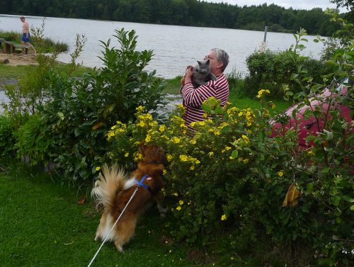 Leider gehen die anderen Hund gerade und Carl muss alleine spielen. Peter erbarmt sich und rennt eine Runde mit ihm. Ich habs aber vergessen zu knipsen.