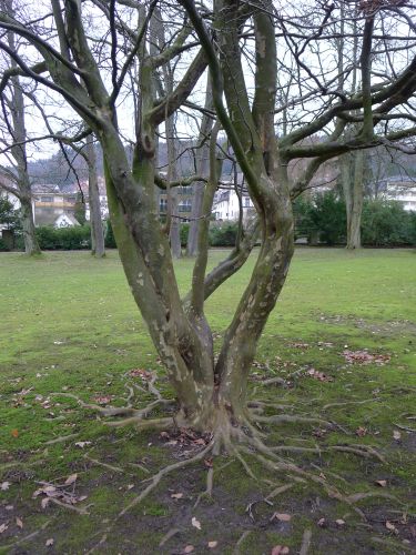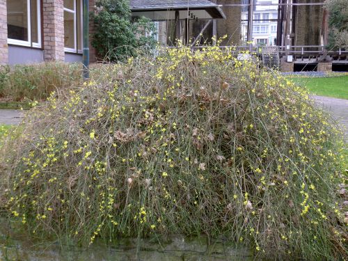 Der Winterjasmin blüht, und hier steht ein Platanenbusch. Den haben wir auch noch nie gesehen.