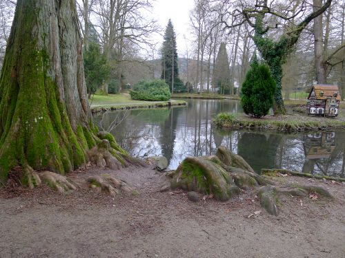 Die Sumpfzypresse mit den Atemknien und das Häuschen auf der Enteninsel sehen wir sonst vom Hauptweg aus auch nicht.