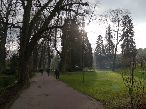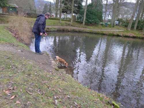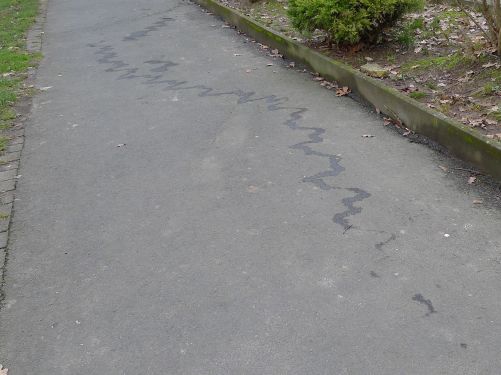 Und hier war ein unheimlicher Pisser unterwegs, denn ich glaub kaum, dass einer mit ner Gießkanne im Kurpark unterwegs ist. Wir sind zwar heute auf dem äußeren Weg, den man nicht direkt einsehen kann, aber da hat sich einer was getraut....