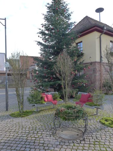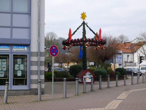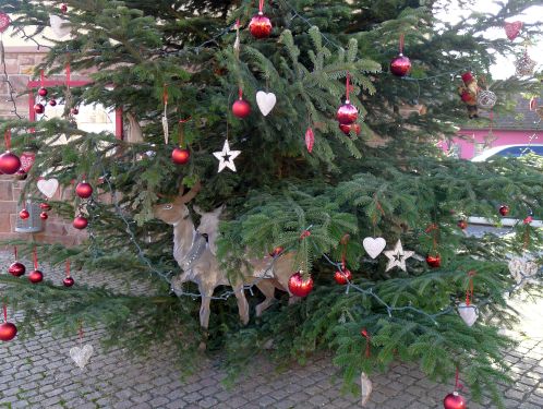 Am Eingang zur Fußgängerzone steht doch tatsächlich ein Weihnachtsbaum. Naja, sind ja auch nur noch 336 Tage bis Weihnachten. Da kann man ja schonmal anfangen zu schmücken.