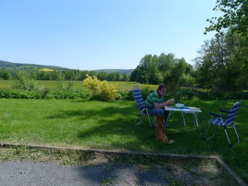 Carl bewacht die Sitzmöbel bis wir alles gerichtet haben, und dann genießen wir den Rest des Tages im Schatten der riesigen Linde.