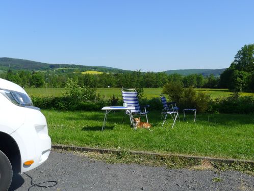 Und was haben wir für ein Glück: Wir bekommen sogar einen Platz in der hinteren Reihe, mit unverbaubarem Blick auf den Spessart.