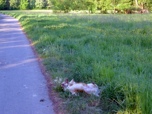 Und zur Krönung wälzt er sich, um nicht nur wie ein Fuchs auszusehen, sondern auch um so zu stinken.