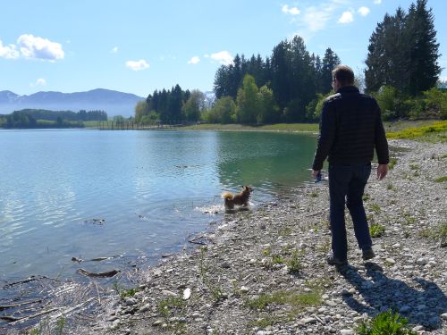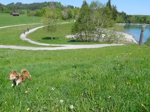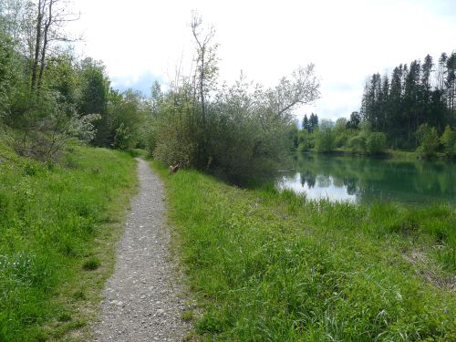 und nach dem Frühstück gehen wir an der Iller entlang zu den beiden Seen mit der Wakeboardanlage.