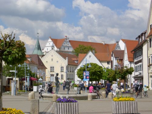 Jedenfalls stehen wir jetzt in Bad Buchau auf festem Untergrund und machen bei Sonnenschein und sommerlichen Temperaturen von über 20° einen Spaziergang durchs Ort.