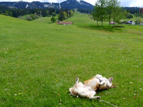 Das Morgengassi muss ausnahmsweise mal Peter übernehmen, denn mir ists hier leider zu hügelig, das macht meine Pumpe nicht mit, und außerdem spinnt mein Blutdruck. Scheint paar Meter zu hoch zu sein hier, oder der Wetterumschwung macht sich bemerkbar, es ist schwül. Jedenfalls sind wir ruckzuck mit dem Frühstück fertig und sitzen jetzt in Blaichach. Naja, hier ists immernoch 700 m über Null, aber besser als Nesselwang.