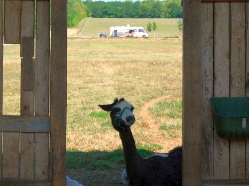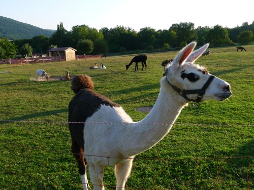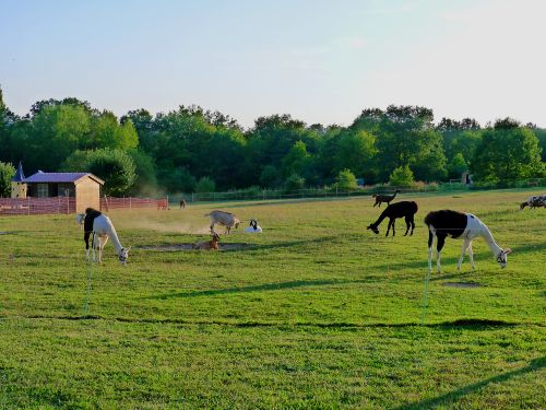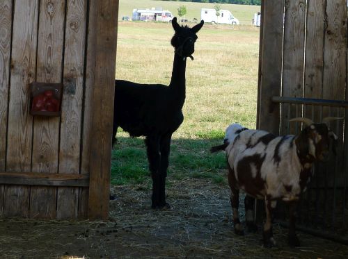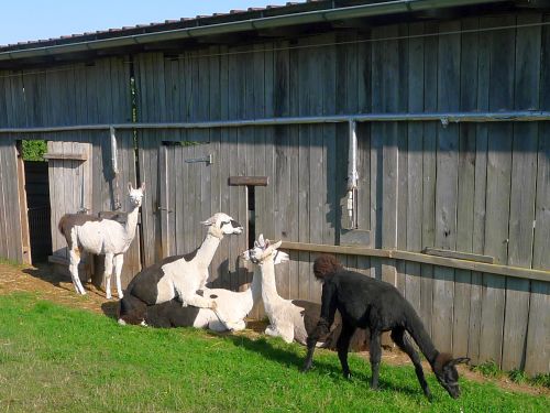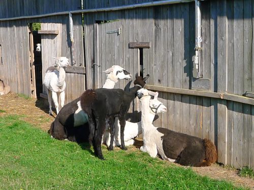 Danach machten wir noch einen kleinen Rundgang zu den Lamas. Zwei lassens sich grad grunzend gutgehen, und die ganze Familie steht schamlos drumherum.