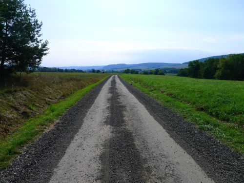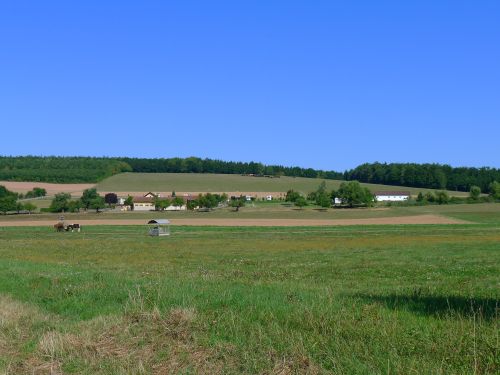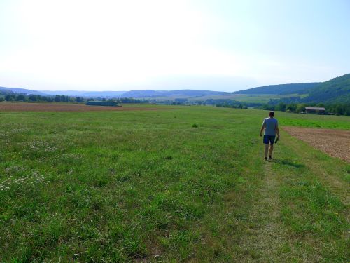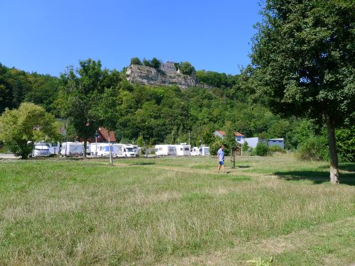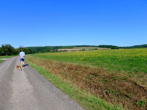 Nach dem Frühstück laufen wir mal Richtung Diebach. Den Kirchturm sehen wir ja den ganzen Tag von oben,