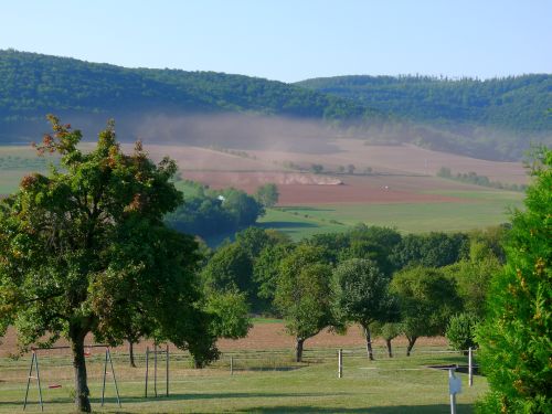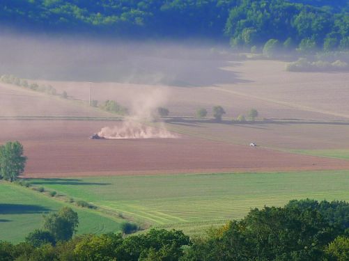 Es ist zwar kein Qualm, aber Staub. Das ganze Tal ist eingestaubt.