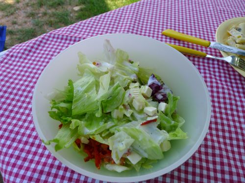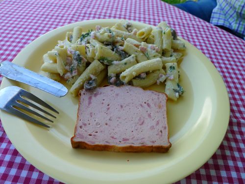Und wie immer, wenn wir einkaufen waren, gibts anschließend Salat. Peter testet diesmal den fertigen Nudelsalat. Für 1,79 € brauch ich mir diese Arbeit nicht machen, denn er hat ihm geschmeckt.