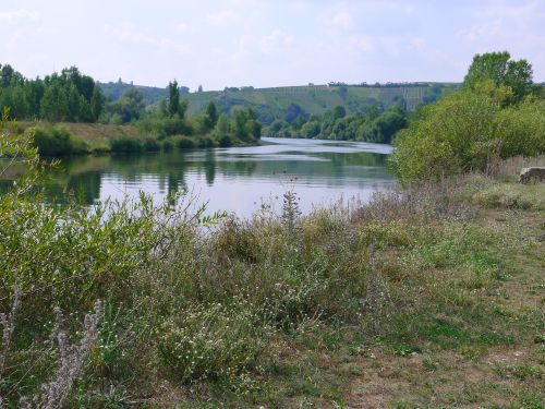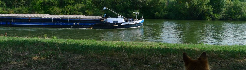 und dann packen wir zusammen und fahren erst mal zu Penny nach Volkach, Kühlschrank auffüllen. Die Stellplätze in Volkach und in Nordheim haben bestimmt keine Mäuse, weil beide zu stark frequentiert werden. Aber sie haben keinen Schatten. Außerdem wollten wir ja bei dieser Hitze eh nicht unterwegs sein, und beschließen heim zu fahren.