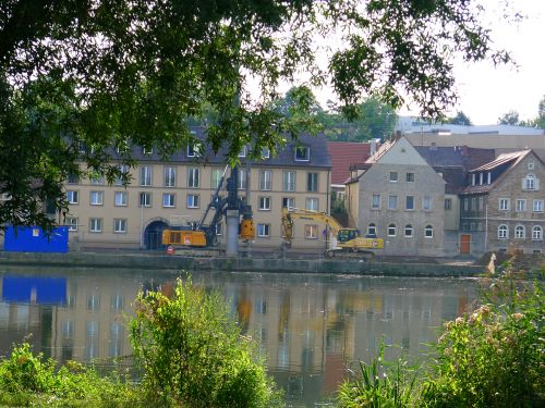 Die Ramme rammt, der Bohrer bohrt, es ist laut. Schade. Nix wie weg.