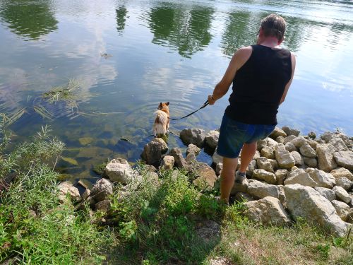 und wir schicken ihn zur Abkühlung auch mal ins Wasser, und irgendwie kriegen wir den Tag rum.