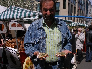 Heute ist in Leipzig Brotmarkt, und da es bereits Mittag ist, besorgt uns Peter zwei Fettbemmen für das gerade verdiente Geld. Vielleicht sollten wir die neu entdeckte Marktlücke überdenken.