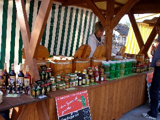 um an der von Bernd empfohlenen Bratwurstbude die erste Thüringer zu testen. Superlecker, prima gewürzt, und natürlich vom Holzkohlegrill. Wenn wir wüssten, wo es diese Dinger zu kaufen gibt, würd ich glatt das Gefrierfach leer machen, um zu bunkern.