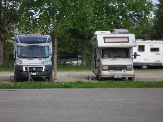 Der ankommende Wohnmobilist wirkt leicht verunsichert, weil ich ihn quasi anhalte und frage, wer er ist. Es ist Avena. Und natürlich hat er mich nicht gleich erkannt, denn unser Aufkleber ist ja auf dem Womo und (leider) nicht auf meiner Stirn.