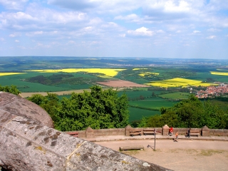 Jetzt genießen wir erst mal die Aussicht über die gelben Felder, die mich nach der langen grauen Zeit noch immer begeistern. Dann gucken wir uns das Denkmal an.