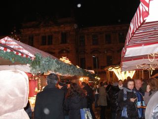 Einen Rundgang durch die weihnachtlich geschmückten Schlossarkaden machen wir aber doch, denn wir sind klatschnass und da tut so ein wenig trockenwarme Luft ganz gut. Nach insgesamt 2 Stunden sind wir wieder zurück auf dem Platz