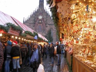 Nach dem Frühstück bei Wiebkes fahren wir gemeinsam nach Nürnberg zum Christkindlsmarkt. Armer Bruno. Er muss die vielen Füße um sich herum ertragen, aus den Pflasterfugen kratzt er sich manchen Wurstschnippel raus,