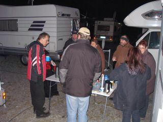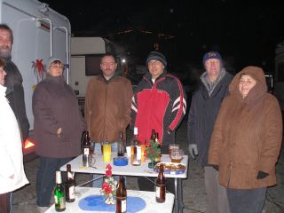 Und wieder stehn wir bei - 6,2° in geselliger Runde zusammen. Dick eingepackt kann mans 2 Stunden aushalten.