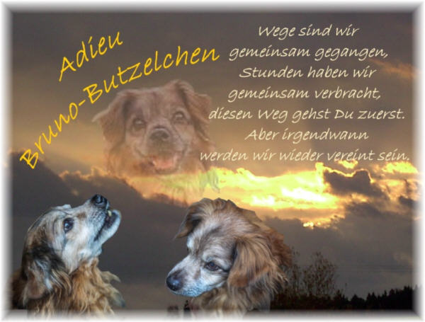 Am 11.2. mussten wir unsren kleinen Bruno-Butzel leider gehen lassen. Er wurde 15, und das ist ein schönes Alter. Wir vertrauen drauf, dass die Trauer irgendwann vergeht und wir ohne Tränen an die gemeinsame glückliche Zeit zurückdenken können.